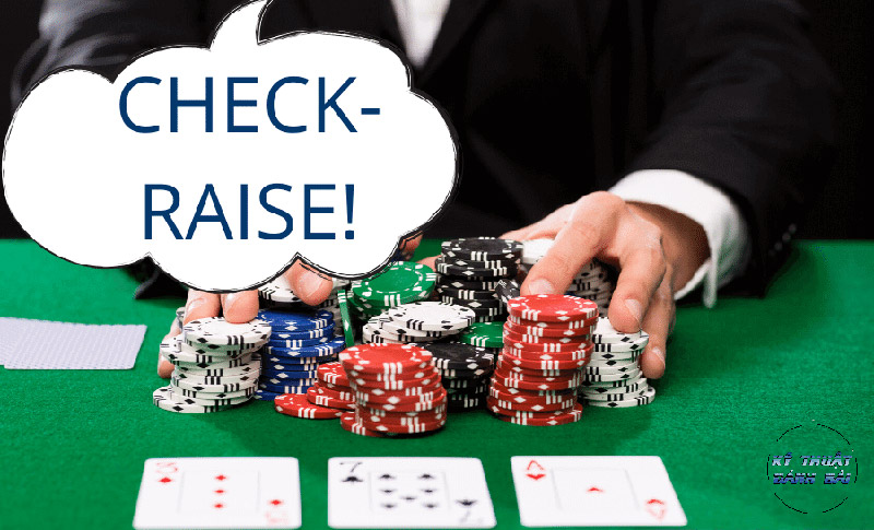Check-raise được thực hiện khi bạn check thời điểm hành động đến với bạn, với ý định tố nếu đối thủ của bạn bet, do đó có tên là 'check-raise'.